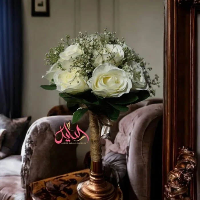 Off-White Roses & Baby’s Breath Artificial Bouquet