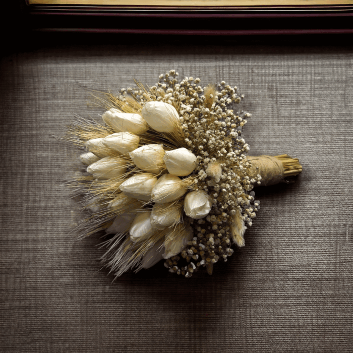 Original price was: 1150 EGP.870 EGPCurrent price is: 870 EGP.White tulip artificial bouquet with baby’s breath and satin finish